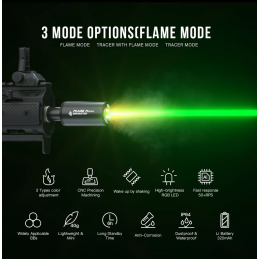 3 options de mode : Flamme / Traceur + Flamme / Traceur.