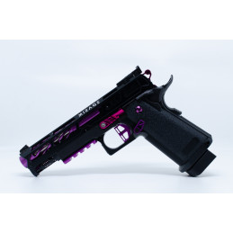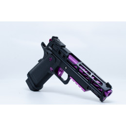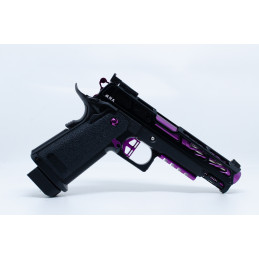 Découvrez le Hi-Capa 5.1 BLACK ORACLE, une réplique custom conçue pour les joueurs exigeants à la recherche de style, de fiabilité et de performance. Ce modèle associe la base Tokyo Marui légendaire à un ensemble de pièces CNC haut de gamme MNA et NexxSpeed, avec une finition Violet et noir du plus bel effet.