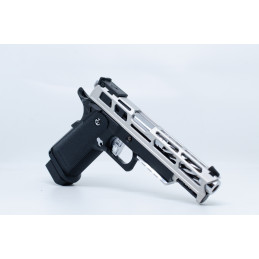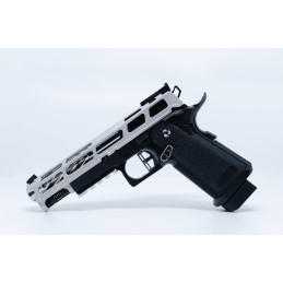 Découvrez le Hi-Capa 5.1 ADAMANTIUM, une réplique custom conçue pour les joueurs exigeants à la recherche de style, de fiabilité et de performance. Ce modèle associe la base Tokyo Marui légendaire à un ensemble de pièces CNC haut de gamme MNA et NexxSpeed, avec une finition Silver, Glossy Chrome et noir du plus bel effet.