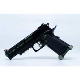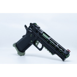 Découvrez le Hi-Capa 5.1 ORION, une réplique custom conçue pour les joueurs exigeants à la recherche de style, de fiabilité et de performance. Ce modèle associe la base Tokyo Marui légendaire à un ensemble de pièces CNC haut de gamme MNA et NexxSpeed, avec une finition Army Green et noir du plus bel effet.